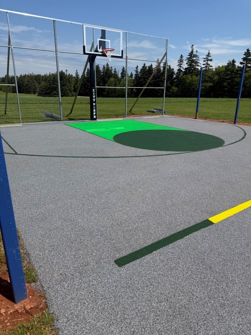Including rubber and asphalt paving for durability and visual appeal.